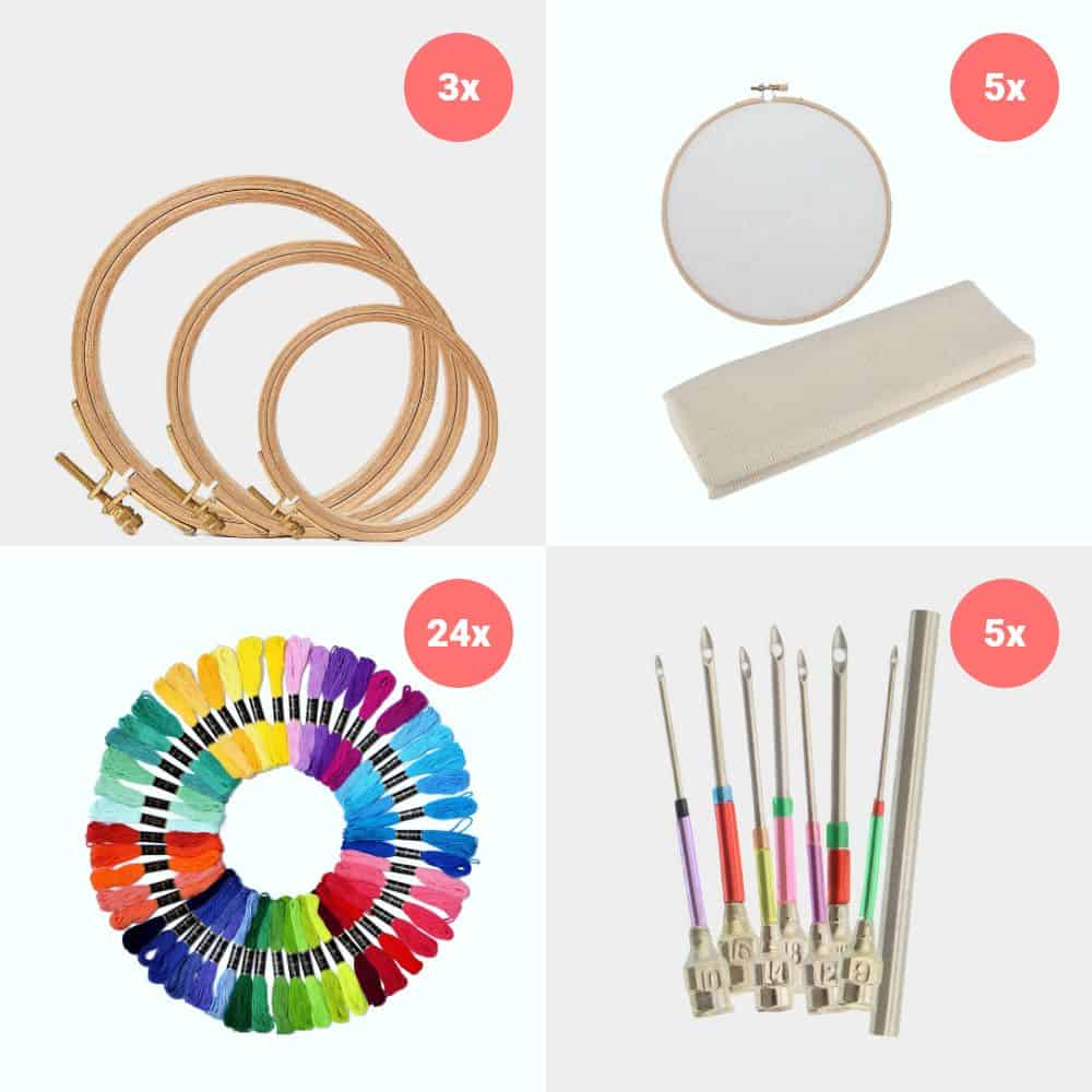 • 5 piezas de tela de algodón de alta calidad (tamaño 30 × 30 cm), lo que te garantiza la mejor superficie para tu bordado
