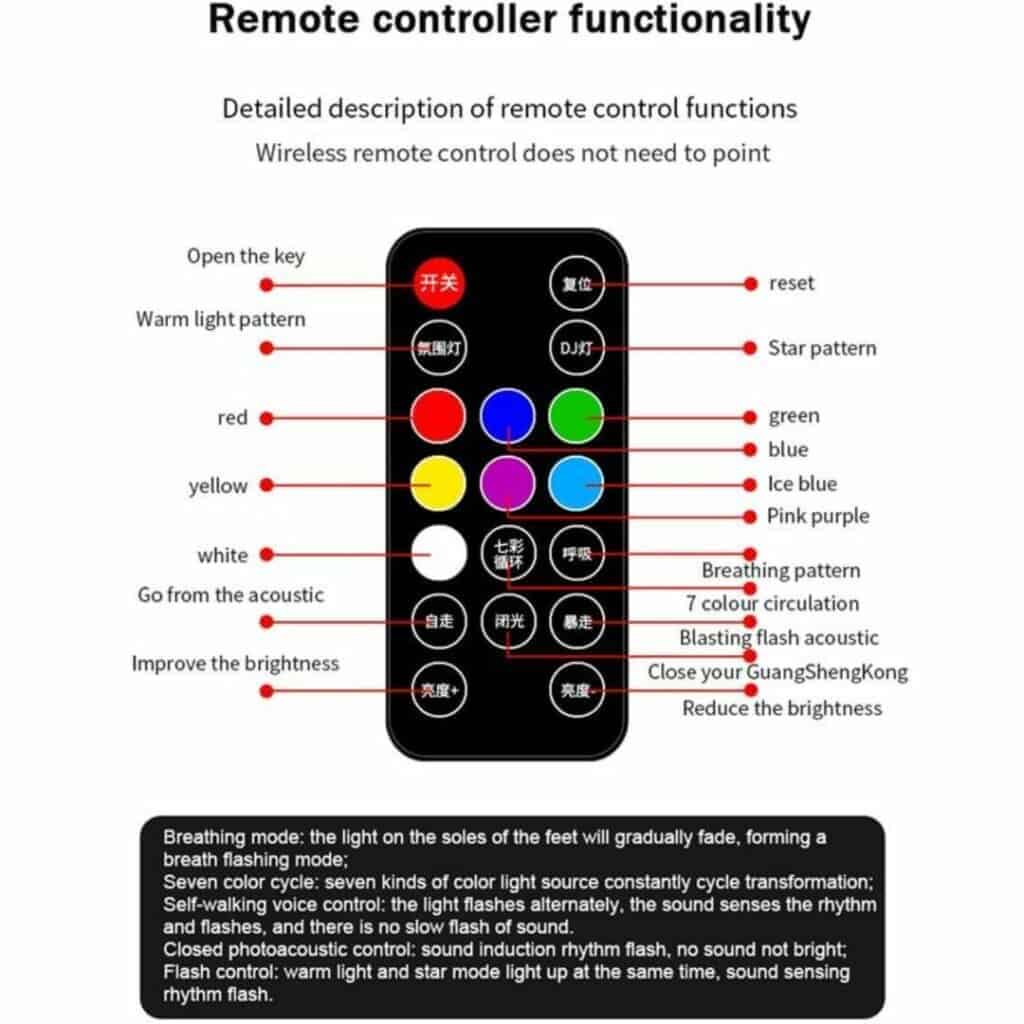 • Las luces pueden seguir el ritmo de la música, lo que añadirá otro toque mágico a la experiencia de conducción.