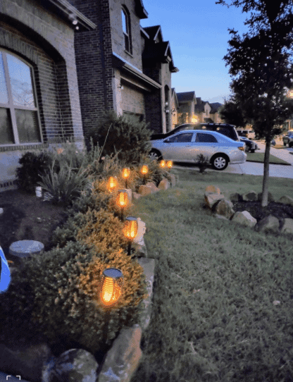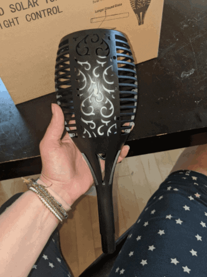 ¡Me encanta cómo se ve! ¡Realmente parece que es una antorcha real! ¡Las luces LED brillan intensivamente durante toda la noche incluso cuando hace mal tiempo!