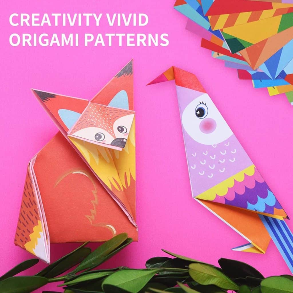 • El juego de origami tiene diseños coloridos que incluyen flores, animales y plantas, cohetes, naves espaciales, etc.