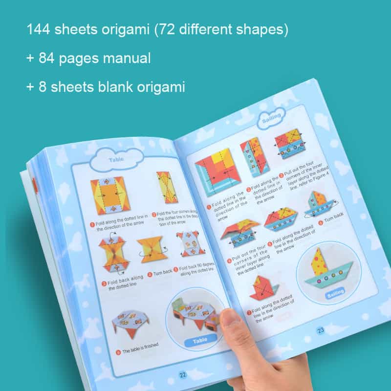 • Incluido en el paquete: 144 hojas de origami (72 formas diferentes), 84 páginas de manual (escrito paso a paso que puede abrir la mente) y 8 hojas en blanco / papeles para práctica