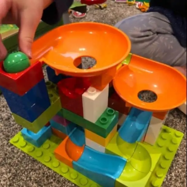 A mi hijo le gusta cuando juego con él en sus circuitos. ¡Contamos el tiempo para ver quién bajará su bola más rápido! ¡Este juego realmente lo hace feliz!