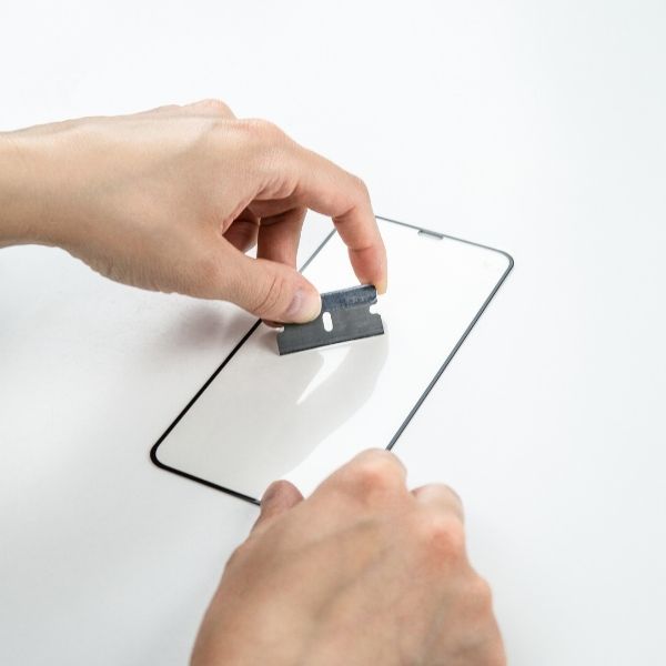 Puedes utilizar la hoja de afeitar para limpiar la superficie alrededor de la grieta.