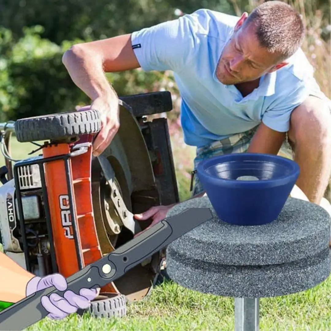 - Esta herramienta para afilar cuchillas para cortacésped te permite obtenér unas cuchillas afiladas como una navaja y garantiza que cada trozo de hierba se cortará por completo.