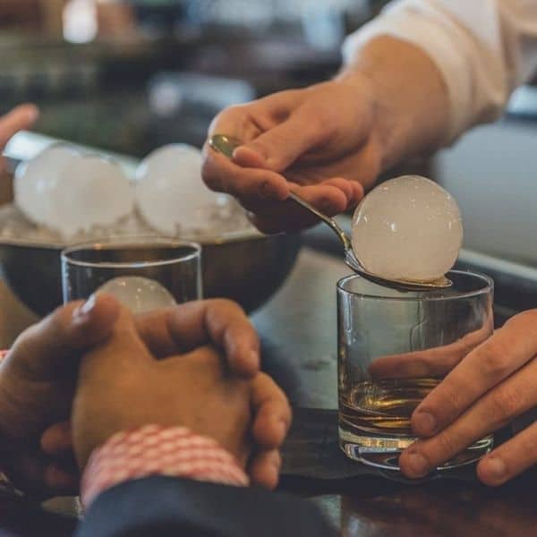 ¡Qué manera más original para dar el sabor a un cóctel! Las bebidas parecen muy atractivos con este bola de hielo derritiéndose por dentro. ¡Mmm!