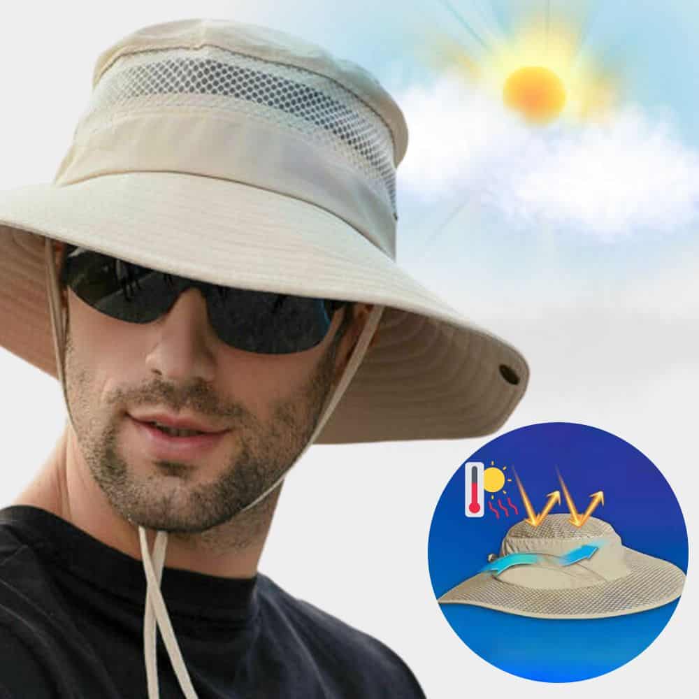 El sombrero está diseñado para reflejar hasta un 99% de los dañinos rayos UV, lo que en consecuencia reduce el impacto del calor en un 80%. Es de tamaño ajustable y está fabricado con materiales que permiten una alta aireación que mantendrá tu cabeza fresca incluso en condiciones de calor intenso.